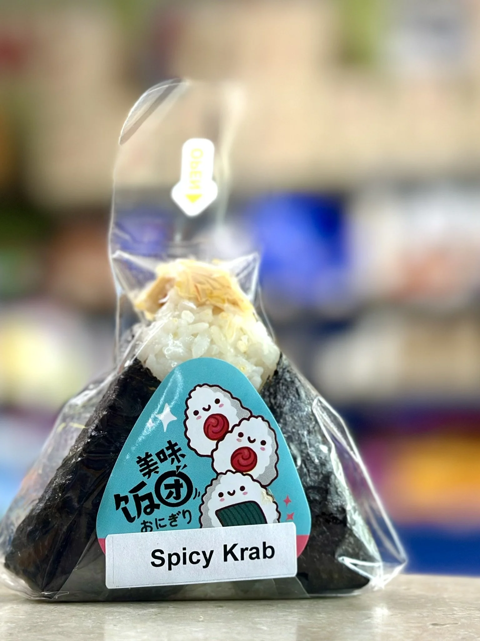 A crave-worthy Japanese rice ball packed with flavor! This onigiri features seasoned rice blended with rice vinegar and sesame oil, filled with a spicy mix of imitation crab meat, Kewpie mayo, and sriracha, then wrapped in crispy seaweed. Topped off with toasted sesame seeds for that extra crunch.