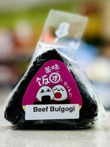 Enjoy the rich, mouthwatering flavor of our Beef Bulgogi Onigiri, made fresh daily with tender marinated beef, caramelized onions, and green onions. Wrapped in seasoned rice with furikake and a hint of sesame oil, then finished with a crisp seaweed wrap and a sprinkle of sesame seeds, it's the perfect grab-and-go meal packed with bold Korean-Japanese fusion flavor.